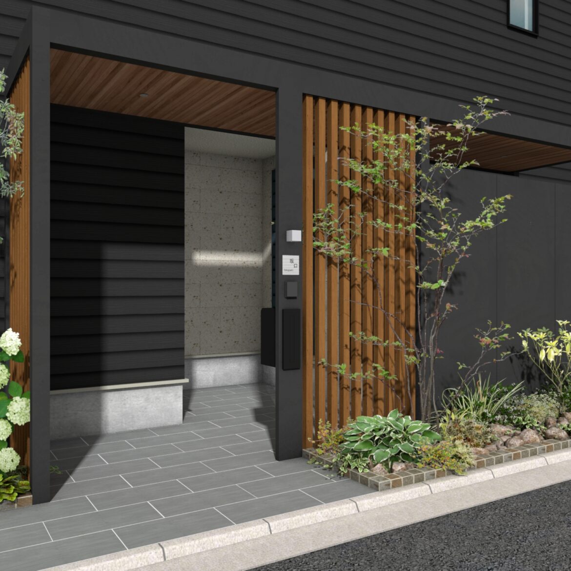 門まわり(フレーム付門柱)ホームヤードルーフプラン11