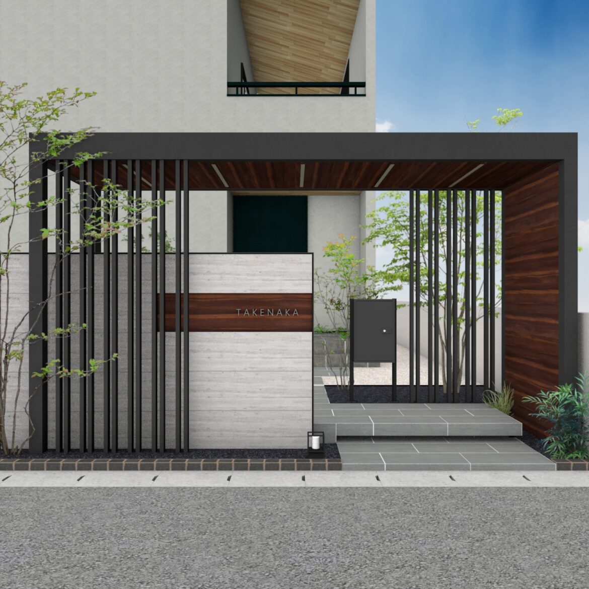 門まわり(フレーム付門柱)ホームヤードルーフプラン11|HYM11