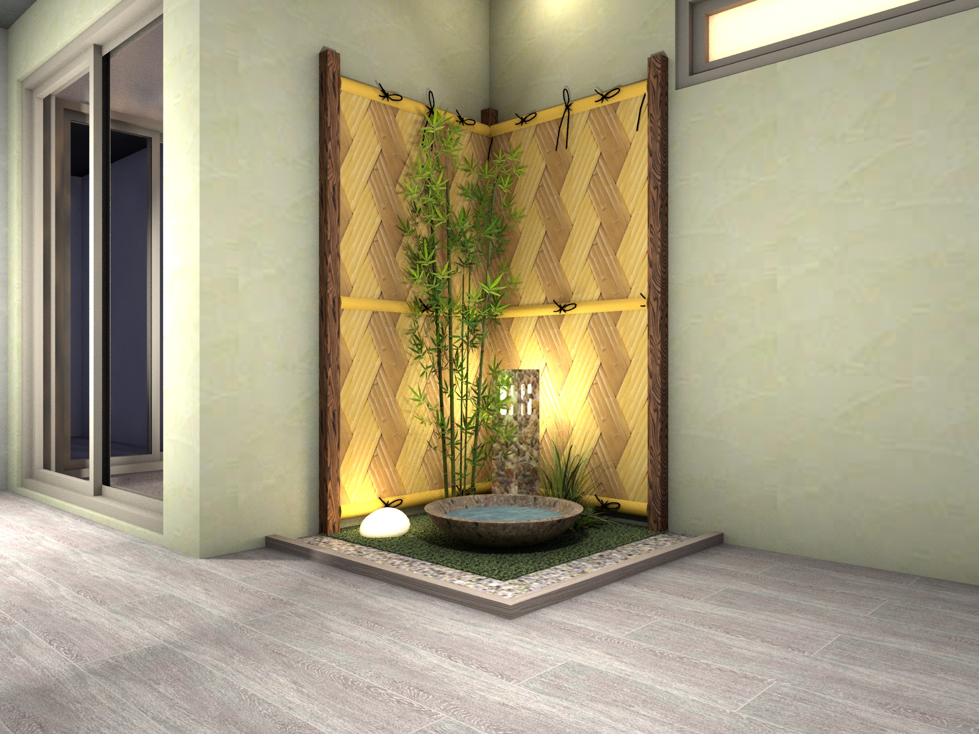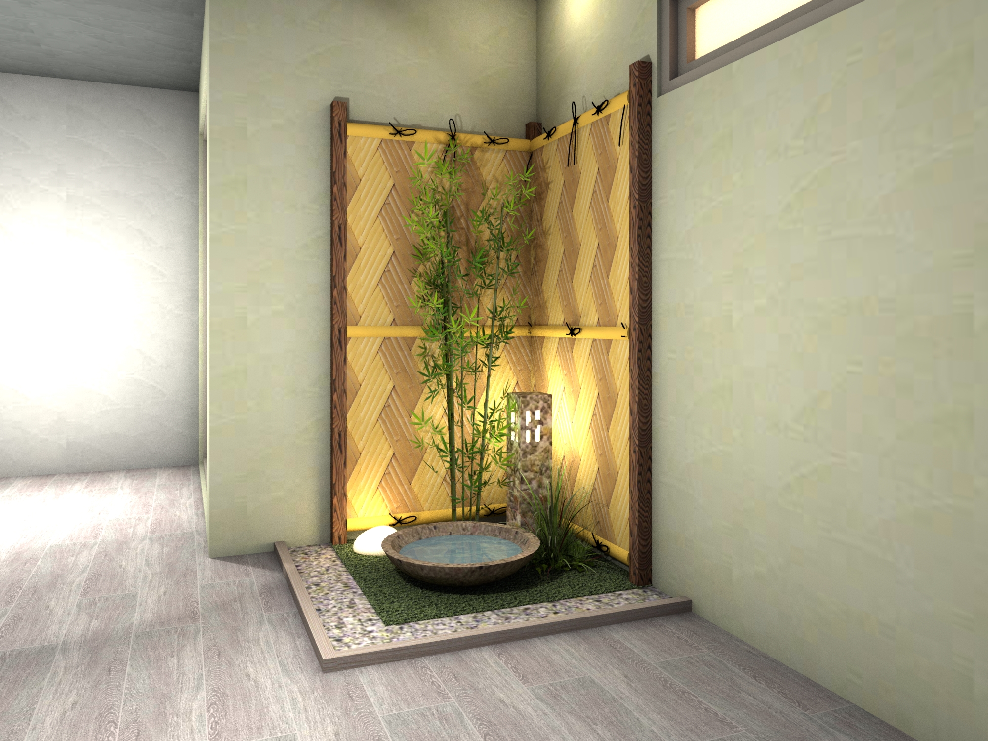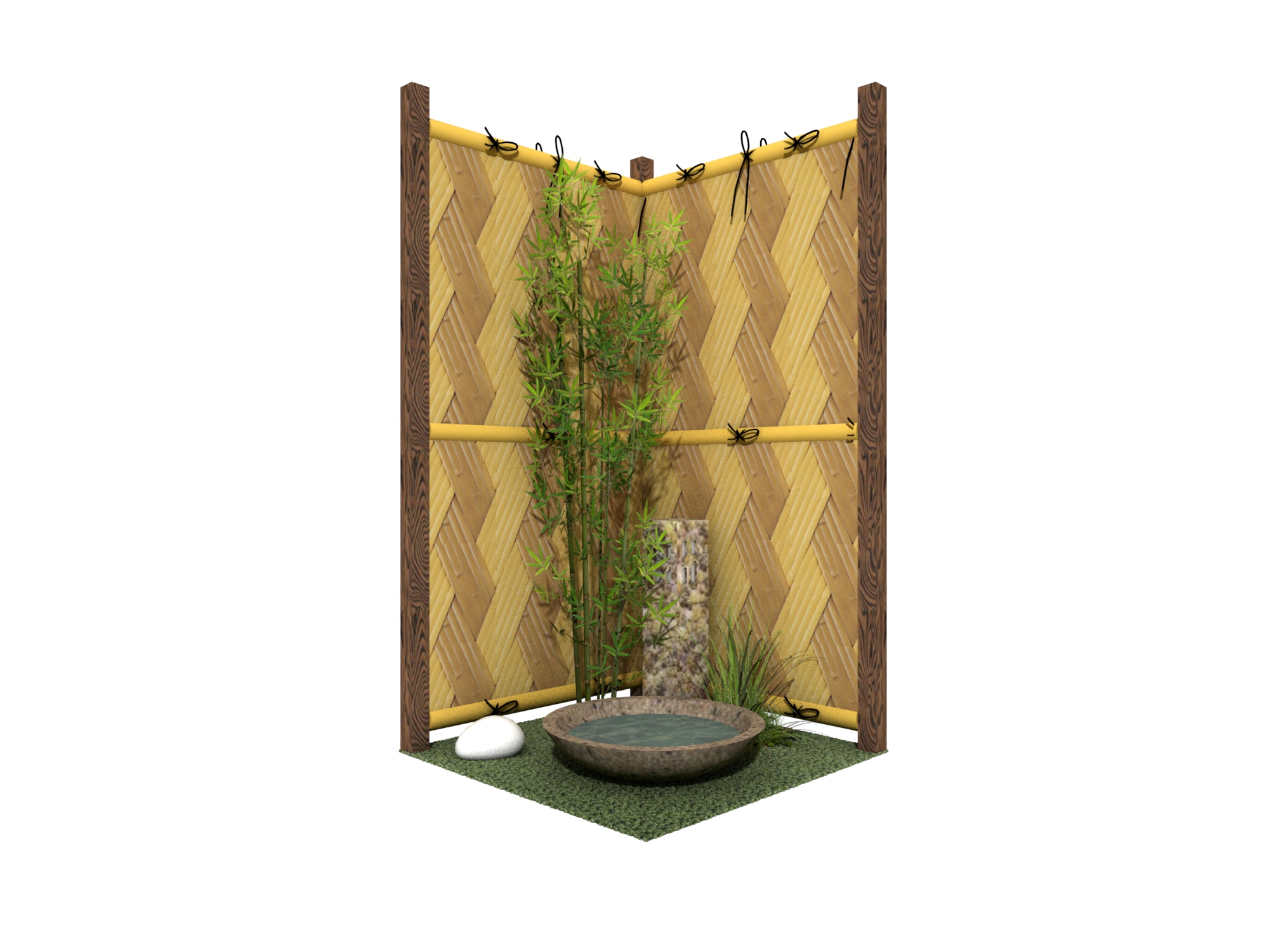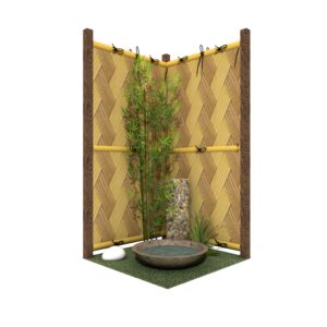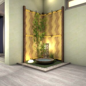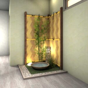 室内の一角に、心安らぐ和の情景を。耐久性に優れた人工強化竹垣の質感と、清涼感を添える水鉢が、日常に凛とした静寂をもたらします。お手入れ不要な人工素材で、瑞々しい緑と伝統美を末永く。限られたスペースを、日々の喧騒を忘れて自分を整える、上質な癒やしの空間に変えます。