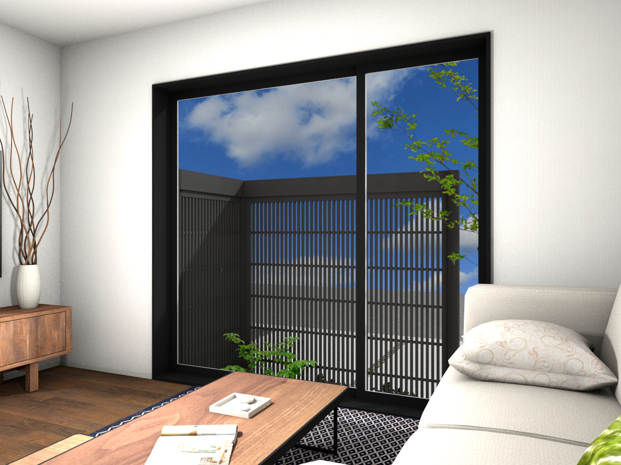 • エバースクリーン縦細格子 基本型 フレームW1950×H2000(フレーム/京町家くろちゃ、パネル/京町家くろちゃ)